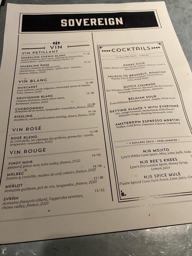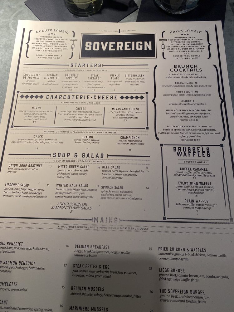 Welcome to The Sovereign, a Belgian beer bar located in Georgetown, Washington, DC. This trendy spot offers a unique dining experience with vegan and vegetarian options, wheelchair accessibility, and a full bar with an extensive beer selection. The atmosphere is upscale yet welcoming, perfect for a casual night out or a special occasion. The menu features a variety of Belgian-inspired dishes, from white wine mussels to Leige Burgers served on waffles. The flavorful food paired with the diverse beer options make for a memorable dining experience. Don't miss out on the Happy Hour specials and the cozy outdoor seating area. Whether you're a beer enthusiast or simply looking for a delicious meal, The Sovereign has something for everyone. [Check them out at 1206 Wisconsin Ave NW or call (202) 774-5875 to make a reservation.]